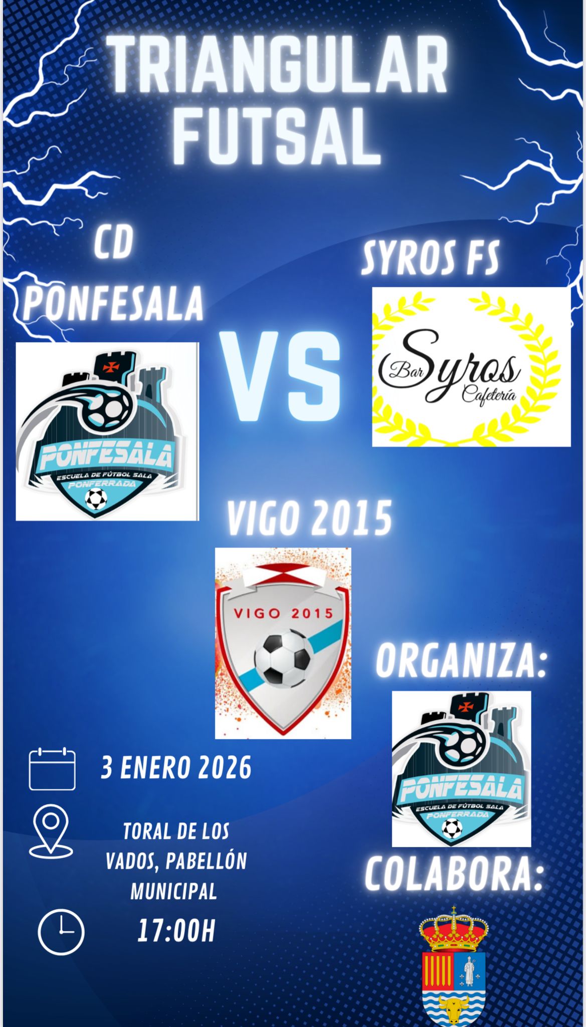 En el triangular participarán el CD Ponfesala, el Syros FS y el Vigo 2015, que se enfrentarán a partir de las 17:00 horas en una serie de encuentros que prometen intensidad y espectáculo para los aficionados a este deporte.