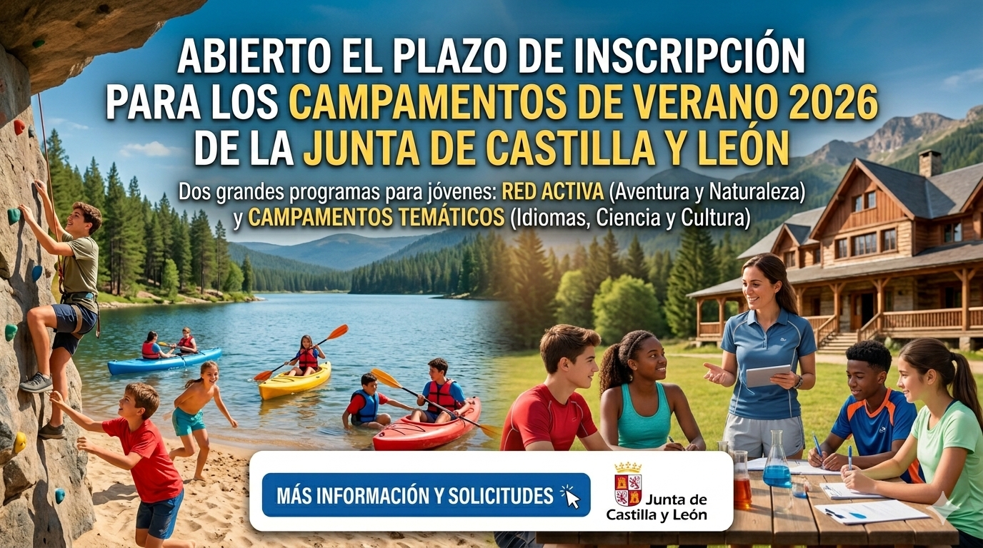 Se informa a todos los interesados que ya se han abierto las inscripciones para solicitar plaza en los dos grandes programas de campamentos de verano organizados por la Junta de Castilla y León: Red Activa y Campamentos Temáticos Juveniles.