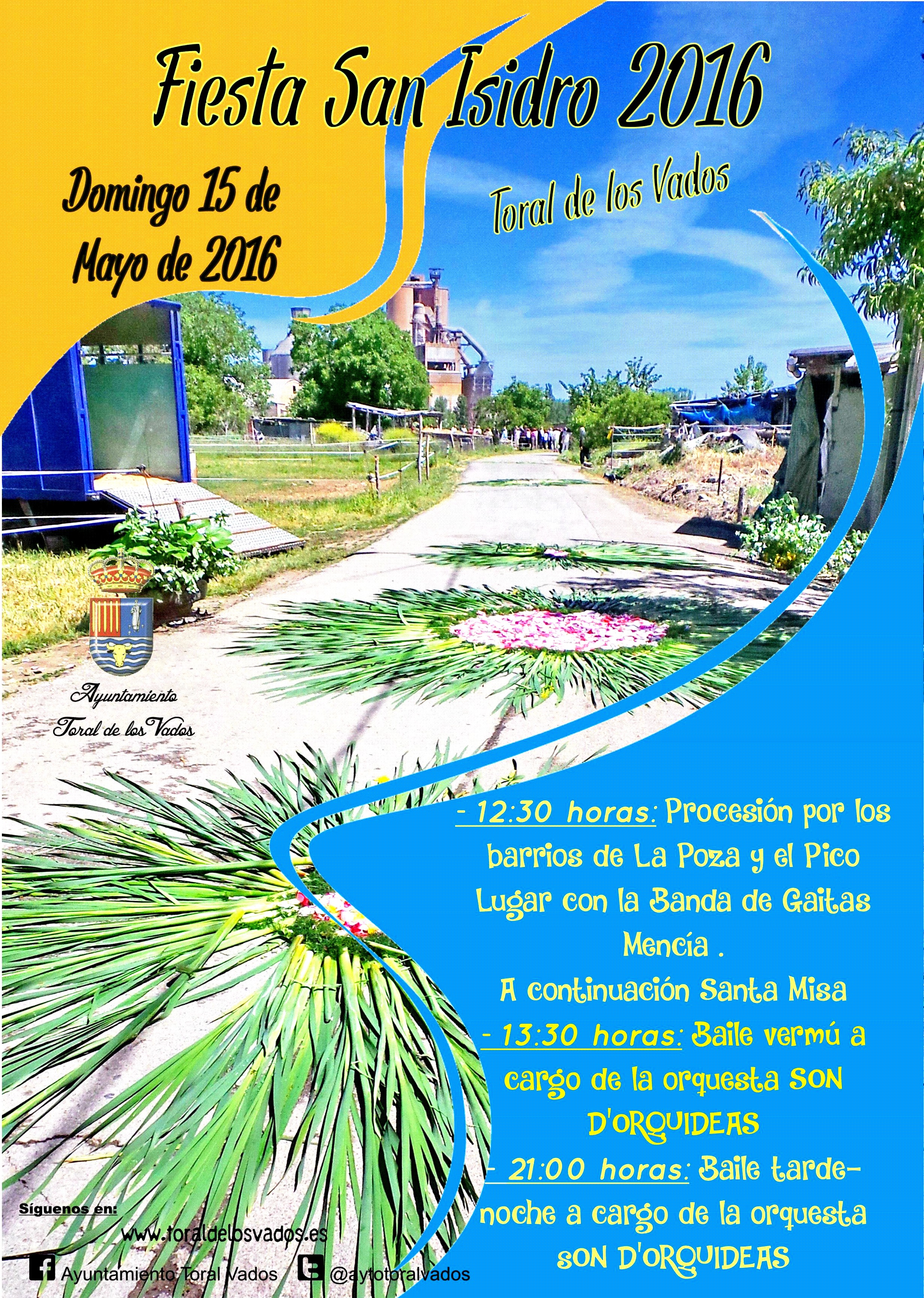 Con motivo de la celebración el próximo domingo 15 de Mayo de la fiesta en Toral de los Vados en honor a San Isidro, os presentamos el programa de actos para ese día: