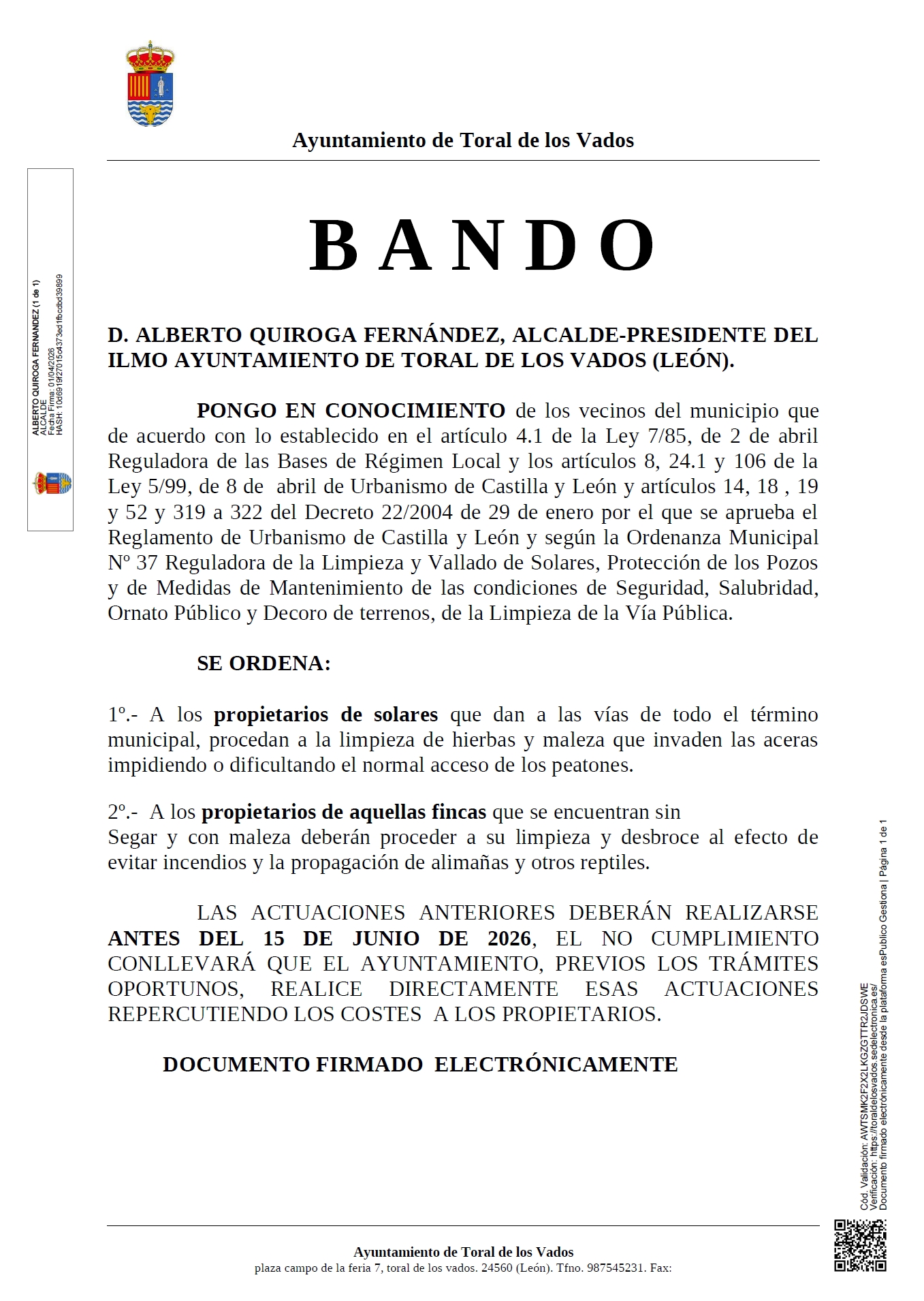 Mancomunidad de Municipios Bierzo Central, a petición del Ayuntamiento de Toral de los Vados, ha puesto en las oficinas del Ayuntamiento un contenedor para depositar pilas usadas.